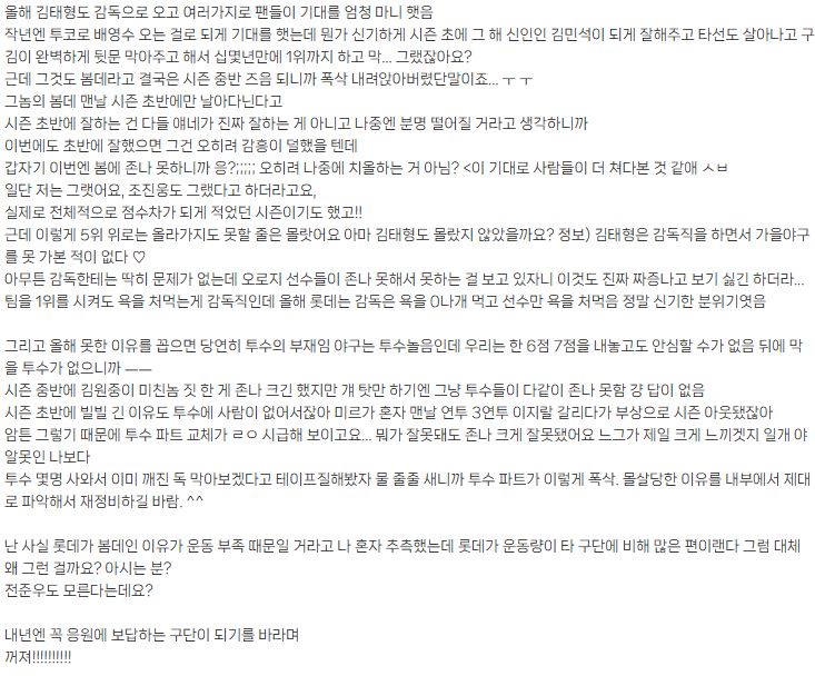 근데 올해는... 뭔가... 하...... 아 진짜 쓰기싫다. 올해는 진짜 쌩초반에는 개막전 엘지한테 스윕당하고 언제나처럼 병신같이 시작하는구나 싶엇는데