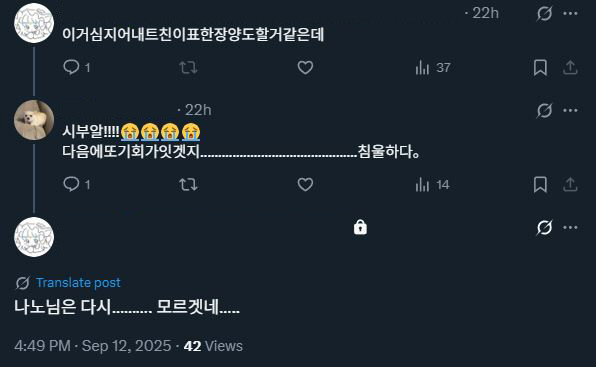 그래서 뭐 씨발? ㅈ됏네 아.. 이러고 활동 끝나는 기념으로 하는 라이브라도 가야되나 생각햇는데